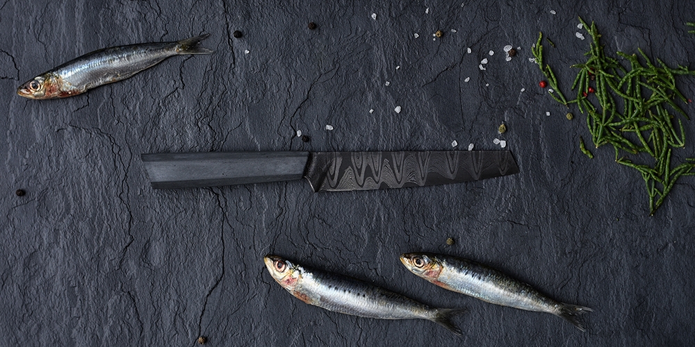 Handmade quality just like back in the old days. Elegant hand-forged blade from the traditional Damascene steel with a modern concrete handle. Dangerous beauty in a limited edition.